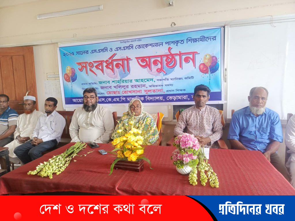 ভেড়ামারা প্রতিনিধিঃ মিলন আলী কুষ্টিয়ার ভেড়ামারা উপজেলার এ.এস.এম.কে.পি মাধ্যমিক বিদ্যালয়ের এসএসসি ও এসএসসি ভোকেশনাল ২০২৫ সালের পরীক্ষায় উত্তীর্ণ শিক্ষার্থীদের সংবর্ধনা প্রদান করা হয়েছে । মঙ্গলবার (১৭ জুলাই) বিদ্যালয় প্রাঙ্গণে আয়োজিত সংবর্ধনা অনুষ্ঠানে শিক্ষার্থীদের এ সম্মাননা ও উৎসাহ প্রদান করা হয়। প্রধান শিক্ষক মোছাঃ রোখসানা সুলতানা এর সভাপতিত্ব প্রধান অতিথি হিসেবে উপস্থিত ছিলেন বিদ্যালয় পরিচালনা পর্ষদের সভাপতি শাহরিয়ার আহমেদ( সাদ্দাম) । বিশেষ অতিথি হিসেবে উপস্থিত ছিলেন অভিভাবক সদস্য খলিলুর রহমান, সহকারী প্রধান শিক্ষক রফিকুল ইসলাম। এসময় বিদ্যালয়ের সকল শিক্ষক-শিক্ষিকা, অভিভাবক ও শিক্ষার্থীরা অনুষ্ঠানে অংশগ্রহণ করে। অনুষ্ঠানে বক্তারা শিক্ষার্থীদের ভবিষ্যৎ জীবন গঠনে অধ্যবসায়, নৈতিকতা ও মানবিক মূল্যবোধ বজায় রাখার আহ্বান জানান। বক্তারা বলেন, পরিবার ও শিক্ষকের অবদানই একজন শিক্ষার্থীর সফলতার পেছনে সবচেয়ে গুরুত্বপূর্ণ ভিত্তি। প্রধান অতিথি জনাব শাহরিয়ার আহমেদ তাঁর বক্তব্যে বলেন, আজকের শিক্ষার্থীরাই আগামী দিনের ভবিষ্যৎ। শুধু পরীক্ষায় পাস করলেই যথেষ্ট নয়, তাদের ভালো মানুষ ও দায়িত্বশীল নাগরিক হিসেবেও গড়ে উঠতে হবে। বর্তমান প্রতিযোগিতার যুগে টিকে থাকতে হলে জ্ঞান অর্জনের পাশাপাশি মূল্যবোধ, দেশপ্রেম এবং পরিবেশ সচেতনতা থাকতে হবে। তোমাদের প্রতিটি কাজে যেন মানুষের উপকারে আসে, সেই চেতনা নিয়ে পথ চলা শুরু করতে হবে। এই সফলতা যেন তোমাদের আত্মতুষ্টিতে না ভোগায়, বরং ভবিষ্যতের পথে আরও ভালো করার প্রেরণা জোগায়। তিনি আরও বলেন, বিদ্যালয় শুধু পড়ালেখার স্থান নয়, এটি মানবিক গুণাবলি অর্জনের ক্ষেত্রও। শিক্ষকরা কেবল পাঠ্যপুস্তক শেখান না, তারা জীবন গঠনের দীক্ষাও দেন। সাফল্যের এই মঞ্চ থেকে তোমাদের পরিবার, শিক্ষক ও সমাজের প্রতি কৃতজ্ঞতা জানিয়ে আগামী দিনের জন্য নিজেদের প্রস্তুত করতে হবে। অনুষ্ঠান শেষে বিদ্যালয়ের সুন্দর্য বন্ধনে বিদ্যালয়ের মাঝে ফলজ ও বনজ গাছের চারা রোপন করা হয়। পরিবেশ রক্ষা ও সবুজায়নের লক্ষ্যে এই ব্যতিক্রমী উদ্যোগ নেওয়া হয়। চারা বিতরণের সময় শিক্ষকদের পক্ষ থেকে শিক্ষার্থীদের গাছ রোপণ করে তার যত্ন নেওয়ার আহ্বান জানানো হয়।