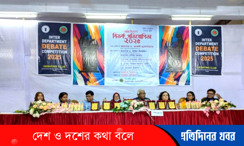 লামিসা তাসনিম জুহা, সোহরাওয়ার্দী কলেজ প্রতিনিধি ঢাকা : বিতর্ক হলো যুক্তির লড়াই, বিতর্কের মাধ্যমে যেকনো বিষয় নিয়ে খোলামেলা আলোচনা করা যায় ,সেটা পক্ষেও হতে পারে বা বিপক্ষেও হতে পারে। শিক্ষার্থীদের দক্ষতা বৃদ্ধির লক্ষ্যে প্রতিটি প্রতিষ্ঠানে প্রয়োজন একটি ডিবেটিং ক্লাব। সেই বিষয়ে লক্ষ্য রেখে সরকারি শহীদ সোহরাওয়ার্দী কলেজও পিছিয়ে নেই ,তাই ২০১৯ সালে শহীদ সোহরাওয়ার্দী কলেজ ডিবেটিং ক্লাব প্রতিষ্ঠ হয়। আজ মঙ্গলবার(২৯ জুলাই) কলেজে শহীদ সোহরাওয়ার্দী কলেজ ডিবেটিং ক্লাবের ষষ্ঠ প্রতিষ্ঠা বার্ষিকী ও সপ্তম বর্ষে পদার্পণ উপলক্ষে আন্ত: বিভাগীয় বিতর্ক ও পুরস্কার বিতরণী অনুষ্ঠান উদযার্পিত হয়। অনুষ্ঠানটি আরম্ভ হয় দুপুর ১২ টায়, প্রথমেই অনুষ্ঠানে আমন্ত্রিত বিশেষ অতিথিবৃন্দকে ফুলের শুভেচ্ছা দিয়ে বরণ করা হয় । অনুষ্ঠানের প্রধান অতিথি ছিলেন অধ্যাপক ডঃ কাকলি মুখোপাধ্যায়। বিশেষ অতিথি ছিলেন অধ্যাপক ডঃ ফরিদা ইয়াছমিন, অধ্যাপক নাসিমা আক্তার, অধ্যাপক মোহাম্মদ মনিরুল ইসলাম ,ডঃ মোছা: আছমা আক্তার বেলী এবং মো: ফকরুল ইসলাম। আরো ছিলেন সাংবাদিক সমিতির সভাপতি ইয়াসিন মোল্লা ,সোহরাওয়ার্দী কলেজ ছাত্রদলের সাধারণ সম্পাদক ,রবিউল ইসলাম রুবেল সোহরাওয়ার্দী কলেজ ছাত্র শিবিরের সভাপতি ,মোহাম্মদ নূর নবী এবং বিভিন্ন ডিপার্টমেন্ট প্রধান । প্রধান বিচারক হিসেবে ছিলেন কবি নজরুল এভিটিং ক্লাব থেকে প্রেসিডেন্ট মো: আজম খান এবং সাবেক প্রেসিডেন্ট জাকারিয়া বারী সাগর , সরকারি তিতুমীর কলেজ ডিবেটিং ক্লাব থেকে প্রেসিডেন্ট হাবিবুল্লাহ রনি এবং ঢাকা কলেজ ডিবেটিং ক্লাব থেকে প্রেসিডেন্ট মো: শাহাদাত হোসেন। এছাড়াও অনুষ্ঠানটি পরিচালনা করে ডিবেটিং ক্লাব এর সভাপতি আওলাদ জিসান,সিনিয়র সহ-সভাপতি ফাহিমুল ইসলাম, সহ সভাপতি আশিকা জান্নাত,সাধারণ সম্পাদক সাবরিনা সুলতানা,সাংগঠনিক সম্পাদক মো: শাহরিয়ার আজিম,দপ্তর সম্পাদক আলিফুল ইসলাম আলিফ ইত্যাদি আরো অনেকে এবং সাধারণ সদস্য সহ দর্শকমন্ডলীও উপস্থিত ছিলো। অনুষ্ঠানের প্রথম পর্বটি একটি বিতর্কের মাধ্যমে পরিচালিত হয়। যেখানে সরকারি দলের সাথে বিরোধীদলীয় দলে বিতর্ক হয়ে থাকে। বিতর্কের বিষয় ছিল"বাংলাদেশের রাজনীতি এখন জনসেবার মাধ্যম নয় বরং ব্যক্তিস্বার্থের হাতিয়ার" । সরকারি দল বা টিম মহাপ্রলয়ের সদস্যসমূহ ছিলেন আরিফুল ইসলাম আলিফ , আশা মনি, আল আমিন। বিরোধী দল বা টিম শিখার সদস্য সমূহ ছিলেন সাবরিনা সুলতানা, আইরিন, জাবের। দুই দলের চমৎকার যুক্তি মাধ্যমে জমে ওঠে বিতর্কটি। উভয় দল তাদের যুক্তিগুলো যথাযথভাবে তুলে ধরে এবং দর্শকদের মধ্যে উৎসাহের সৃষ্টি হয়। বিতর্ক শেষে বিচারক মন্ডলীগণ উভয় দলের যুক্তিগুলো যাচাই করে এবং জয়ী দলটি নির্ধ