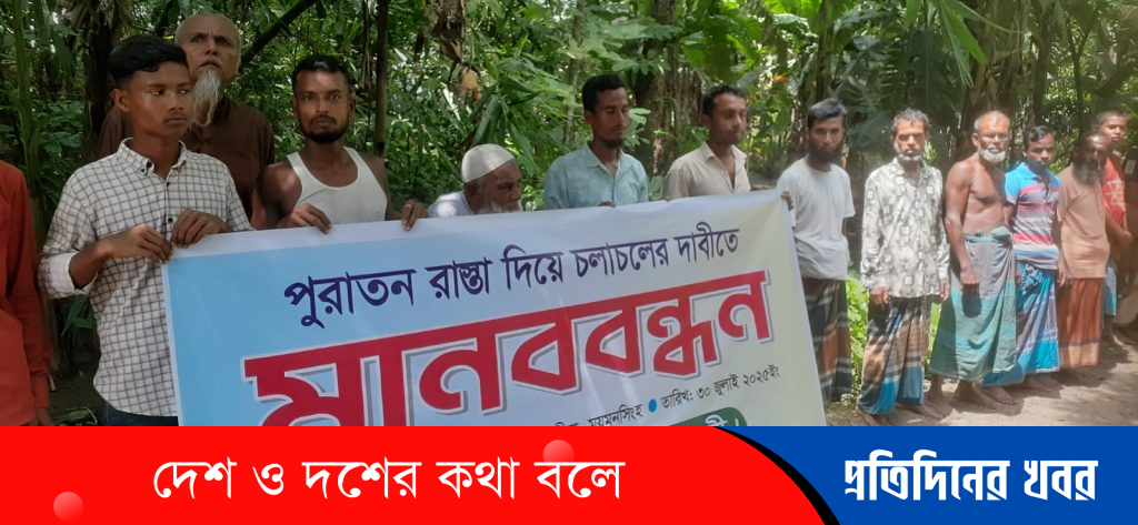 ময়মনসিংহের ফুলবাড়িয়া উপজেলায় উচ্ছেদ বন্ধে ও পুরাতন রাস্তা দিয়ে চলাচলের দাবীতে মানববন্ধন অনুষ্ঠিত হয়েছে।
