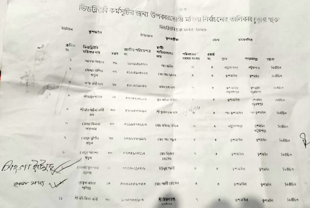 সরকারের সামাজিক কর্মসূচির আওতায় দুস্থ নারীদের পরিবারকে খাদ্য সহায়তার (ভিডব্লিউবি) নতুন ও ধনীব্যক্তিদের নাম তালিকায় অন্তর্ভুক্তিতে চরম অনিয়ম-দুর্নীতির অভিযোগ উঠেছে।