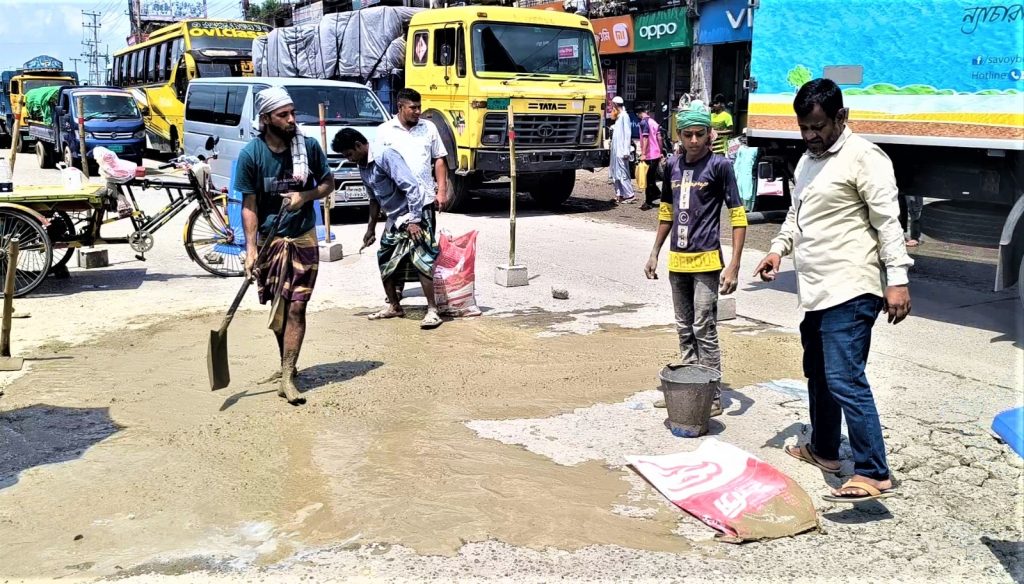টাঙ্গাইলে সওজ’র অসহযোগিতার প্রতিবাদে ব্যক্তি উদ্যোগে মহাসড়ক সংস্কার!