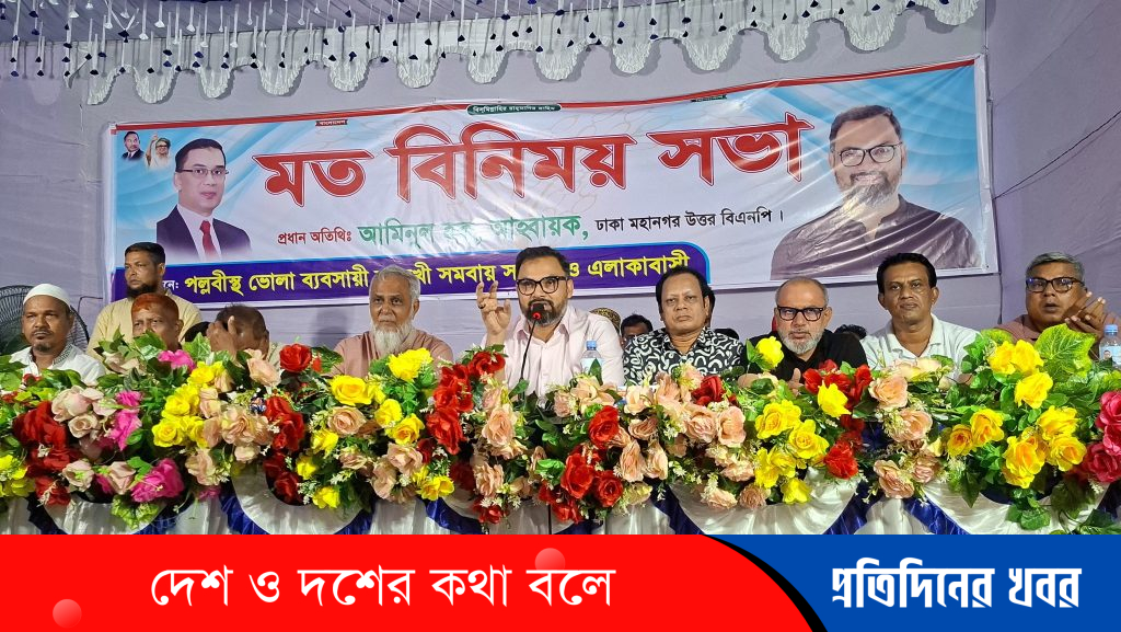 নিজস্ব প্রতিবেদক ঢাকা মহানগর উত্তর বিএনপির যুগ্ম আহ্বায়ক আমিনুল হক এর প্রধান অতিথিত্বে রাজধানীর পল্লবীতে এক মতবিনিময় সভা অনুষ্ঠিত হয়েছে। সভায় সভাপতিত্ব করেন ইঞ্জিনিয়ার মজিবর হক স্থানীয় ভোলা ব্যবসায়ী বহুমুখী সমবায় সমিতির নেতৃবৃন্দ। এ সময় বক্তারা বর্তমান দেশের রাজনৈতিক পরিস্থিতি, ব্যবসায়ীদের সমস্যা ও স্থানীয় উন্নয়ন ইস্যুতে মতামত তুলে ধরেন। প্রধান অতিথি আমিনুল হক বলেন, “দেশের গণতন্ত্র পুনরুদ্ধার ও সাধারণ মানুষের অধিকার রক্ষায় বিএনপির নেতাকর্মীদের ঐক্যবদ্ধ থাকতে হবে।” তিনি আরও বলেন, ব্যবসায়ীসহ সমাজের সব শ্রেণি-পেশার মানুষকে সংগঠিত করে আন্দোলনের মাধ্যমে পরিবর্তন আনা সম্ভব। অনুষ্ঠানে পল্লবীর বিভিন্ন ওয়ার্ডের বিএনপি নেতাকর্মী, সমর্থক ও এলাকাবাসী উপস্থিত ছিলেন মোঃ জাহাঙ্গীর কবির জন মোঃ জাহাঙ্গীর বিশ্বাস মোঃ রানা মোঃ নবী হেসেন নবী মোঃ দুলাল মোঃ নিজাম আব্দুল আল মামুন মোঃ সালাউদ্দিন খান