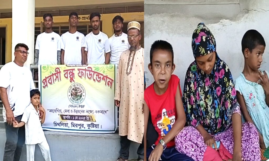 কুষ্টিয়ার মিরপুর উপজেলার চিথলিয়া এলাকার প্রবাসীদের উদ্যোগে গঠিত “প্রবাসী বন্ধু ফাউন্ডেশন”, একদল স্বপ্নবান ও হৃদয়বান প্রবাসীর ভালোবাসা, সহযোগিতা ও সেবার প্রত্যয়ে প্রতিষ্ঠিত একটি সংগঠন। ১ মে ২০২৫ সালে যাদের পদযাত্রা শুরু—তাদের লক্ষ্য একটাই: সহযোগিতা, সেবা ও উন্নয়নের পথে একসাথে এগিয়ে চলা। মাত্র কয়েক মাসের ব্যবধানে সংগঠনটি প্রমাণ করেছে, আন্তরিকতা থাকলে পৃথিবীর যে কোনো প্রান্ত থেকে মানবতার আলো ছড়ানো যায়। তাদের ৩৪ জন প্রবাসী সদস্যের নিরলস প্রচেষ্টায় সম্প্রতি এক হৃদয়ছোঁয়া উদ্যোগের সাক্ষী হয়েছে পাহাড়পুর বাধাগ্রস্থ শিশু বিদ্যালয়। অবহেলিত ও অধিকারবঞ্চিত প্রায় ৩৬৫ জন প্রতিবন্ধী শিক্ষার্থীর জন্য একবেলার খাবারের আয়োজন করে তারা যেন এক টুকরো আনন্দ ও ভালোবাসা পৌঁছে দিয়েছেন শিশুদের মুখে। খাবারের আয়োজনের সেই মুহূর্তে ছিল হাসির ঝিলিক, ছিল আনন্দের উচ্ছ্বাস, আর ছিল এক অদৃশ্য মানবিক বন্ধনের ছোঁয়া। বিদ্যালয়টির প্রধান শিক্ষিকা মোছাঃ শিউলী খাতুন, তাঁর সহযোগী শিক্ষকদের সঙ্গে শত প্রতিকূলতার মাঝেও প্রতিবন্ধী শিশুদের জন্য কাজ করে যাচ্ছেন নিঃস্বার্থভাবে। প্রতিদিন এই শিশুরা শেখে শিক্ষা, আদর্শ, ভালোবাসা ও সামাজিকতার পাঠ। কিন্তু প্রতিষ্ঠানটি পরিচালনা করতে হচ্ছে নানা অর্থনৈতিক সংকটের মধ্য দিয়ে। এমন সময়ে প্রবাসী বন্ধু ফাউন্ডেশন-এর মানবিক সহায়তা যেন এক আশীর্বাদ হয়ে এসেছে এই বিদ্যালয়ের জন্য। তাদের এই উদ্যোগ কেবল একবেলার খাবার নয়, বরং প্রতিবন্ধী শিশুদের মুখে হাসি ফোটানোর এক অনন্য দৃষ্টান্ত। আজকের এই উদ্যোগ যেন আরও অনুপ্রেরণা জোগায় সমাজের অন্যান্য সক্ষম মানুষদের—যারা একটু ভালোবাসা, একটু সহমর্মিতা দিয়ে অগণিত অসহায় মুখে হাসি ফোটাতে পারেন। প্রবাসী বন্ধু ফাউন্ডেশন প্রমাণ করেছে, মানবতার কোনো সীমানা নেই—যেখানে আছে মমতা, সেখানেই আছে উন্নয়নের পথচলা। প্রতিষ্ঠানটির প্রধান শিক্ষিকার এখন একটাই দাবি দেশের বিত্তবানরা এগিয়ে আসলে এই প্রতিবন্ধী শিশুরাও হতে পারে দেশের সম্পদ।