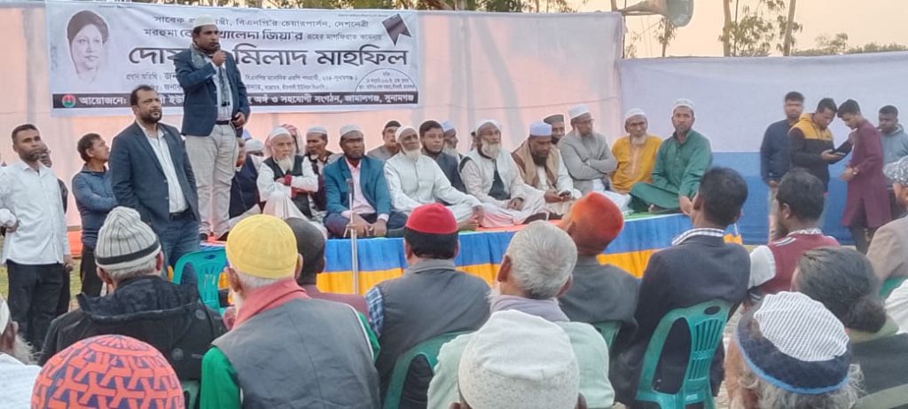 দোয়া মাহফিলে দেশনেত্রী বেগম খালেদা জিয়ার রুহের মাগফিরাত কামনার পাশাপাশি দেশ ও জাতির কল্যাণ, গণতন্ত্র পুনরুদ্ধার এবং নির্যাতিত নেতাকর্মীদের মুক্তির জন্য বিশেষ দোয়া করা হয়। দোয়া ও মোনাজাত পরিচালনা করেন মাওলানা মনিরুজ্জামান। পরে উপস্থিত মুসল্লিদের মাঝে সিন্নি বিতরণ করা হয়।