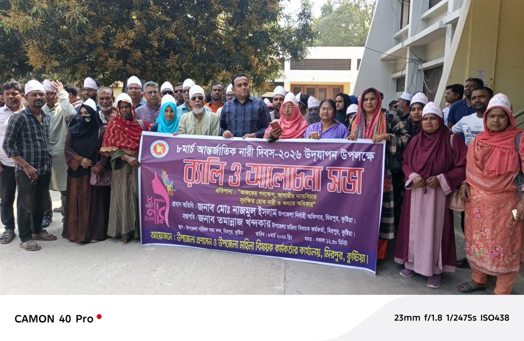 ‘আজকের পদক্ষেপ, আগামীর ন্যায়বিচার সুরক্ষিত হোক নারী ও কন্যার অধিকার’ এই প্রতিপাদ্যকে সামনে রেখে কুষ্টিয়ার মিরপুরে আন্তজার্তিক নারী দিবস পালিত হয়েছে।