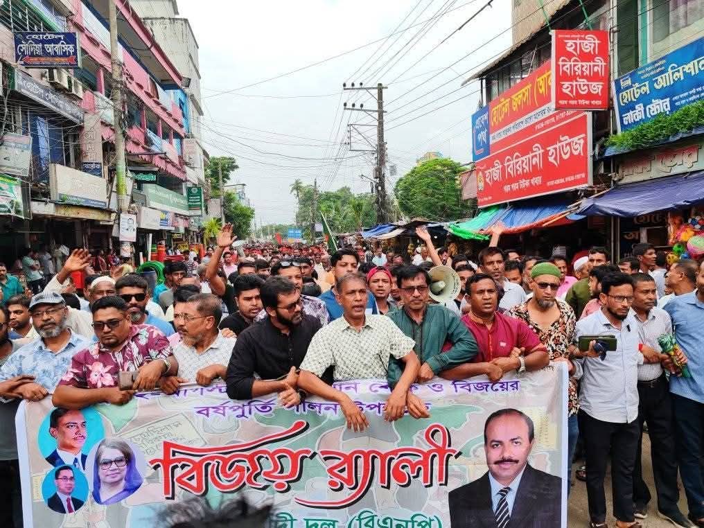 মধ্যনগরে জুলাই গণ-অভ্যুত্থান দিবসে বিএনপির বিজয় র্যালি।