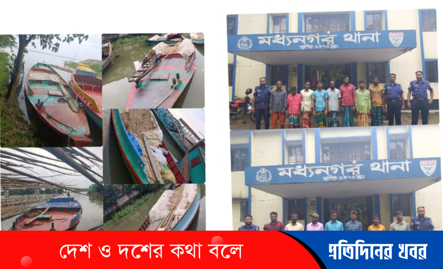 মধ্যনগরে পুলিশের অভিযানে বালু বোঝাই ৫ টি নৌকা সহ ১৫ জন আটক।